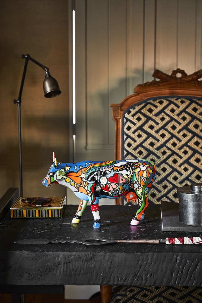 Ontdek Moosy in the Sky with Diamonds, Allison Gregory’s kleurrijke eerbetoon aan een beroemd lied. Een levendige CowParade-figurine vol energie, speelse details en creativiteit.